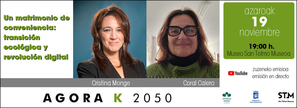 Agora K2050 es una iniciativa impulsada por el Ayuntamiento de San Sebastián, el Museo San Telmo y Fundación Cristina Enea. Se trata de un espacio abierto y libre para el encuentro ciudadano de pluralidades, donde plantear la complejidad, incertidumbres e interrogantes, sobre la realidad actual, nuestros modos de producir, consumir y reproducirnos, asegurando la vida de las generaciones futuras y teniendo en cuenta los límites del Planeta, y el reto de construir una sociedad, una ciudad, más libre, más justa y en armonía con el Planeta.