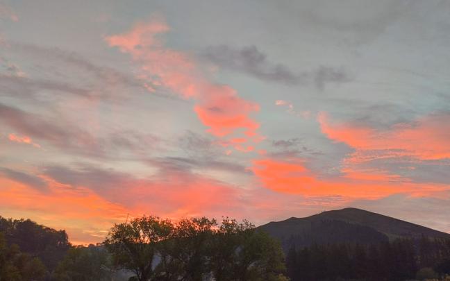 Las altas temperaturas nos están dejando amaneceres mas propios del verano, que del otoño. Se podría decir que estamos en 'veroño' de verdad. Euskal Herria se ha despertado hoy con un amanecer especialmente anaranjado, debido a que las temperaturas ya eran elevadas desde por la mañana. Según Euskalmet las mínimas en la madrugada de hoy han sido mas altas que en los días anteriores, lo que ha propiciado ese tono tan colorido en el cielo, ya desde primera hora.