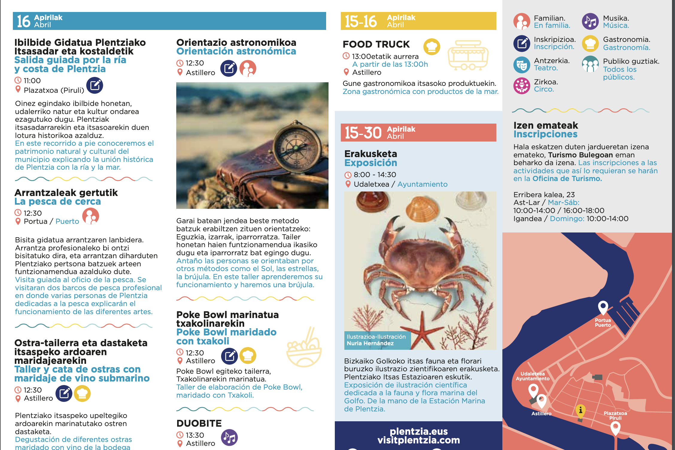 El consistorio ha organizado una amplia programación de actividades que se centran en tres pilares fundamentales: la cultura, la gastronomía y la divulgación. Para ello el Astillero se va a convertir durante dos días en el epicentro de este festival donde el teatro y la música serán los grandes protagonistas, con actuaciones de artistas plentziarras.