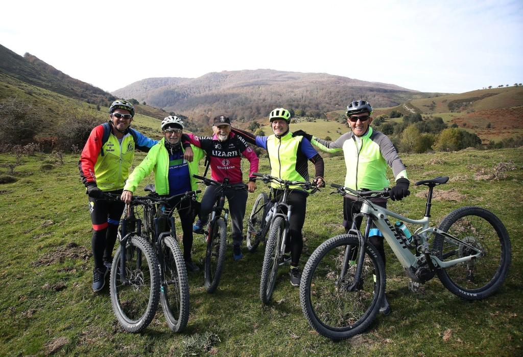 El grupo de amigos de Pamplona Vicente, Mitxel, Peio, Pedro José y Martintxo, en bici por Orión. REPERCUSIÓN A la hora de acceder a la Selva de Irati por el valle de Aezkoa, un lugar de paso es el pequeño pueblo de Aribe, el centro neurálgico del valle. Además de una gasolinera, cajeros y farmacia, la localidad cuenta con un bar-cafetería y un supermercado de la cadena Carrefour Express de Aribe que, en estas fechas, se queda pequeño para proveer a los habitantes del valle y a los visitantes. "Entra muchísima gente a todas horas, incluso entre semana. Estamos sin parar, casi no nos da tiempo ni a reponer. No sé si es el tiempo o la post-pandemia. Irati siempre mueve, pero como este año, nunca", resalta la vecina de Hiriberri de Aezkoa Anabel Burusco, una de las seis personas empleadas en la tienda.