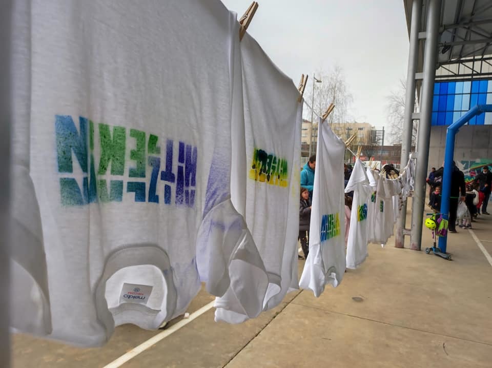 Las actividades se celebraron en el patio cubierto del centro. Con música y un ambiente inmejorable, las familias fueron haciendo cola para participar en un taller para decorar camisetas con el lema de la Korrika de este año: HitzEkin!