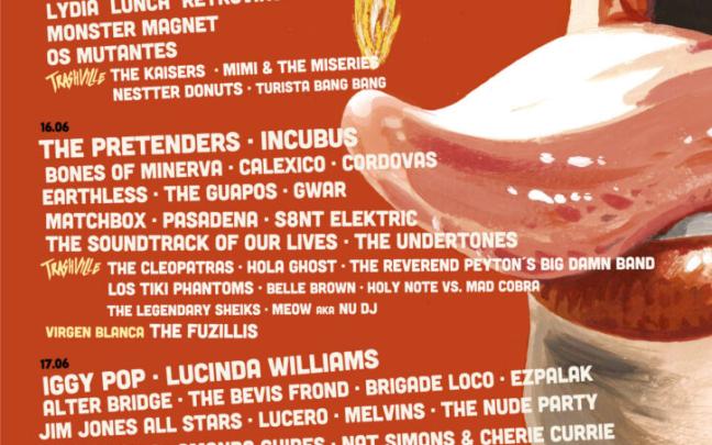 Este jueves, viernes y sábado, Mendizabala recibirá al legendario Iggy Pop, indiscutible icono del punk, The Pretenders, banda de Chrissie Hynde con un repertorio repleto de himnos, Rancid, una de las bandas más importantes de la historia del punk rock, por primera vez a ARF y celebrando su 30 aniversario, Lucinda Williams, una de las mejores compositoras e intérpretes de su era, Incubus, banda indispensable de rock alternativo con más de 23 millones de discos vendidos y varias nominaciones a los Grammy, Melvins, un mito de los 90 muy demandado por el público del festival, Alter Bridge, superventas del hard rock con el reputado vocalista Myles Kennedy al frente, la histórica reunificación de The Soundtrack Of Our Lives y El Drogas, con un repertorio centrado en los 40 años de Barricada.