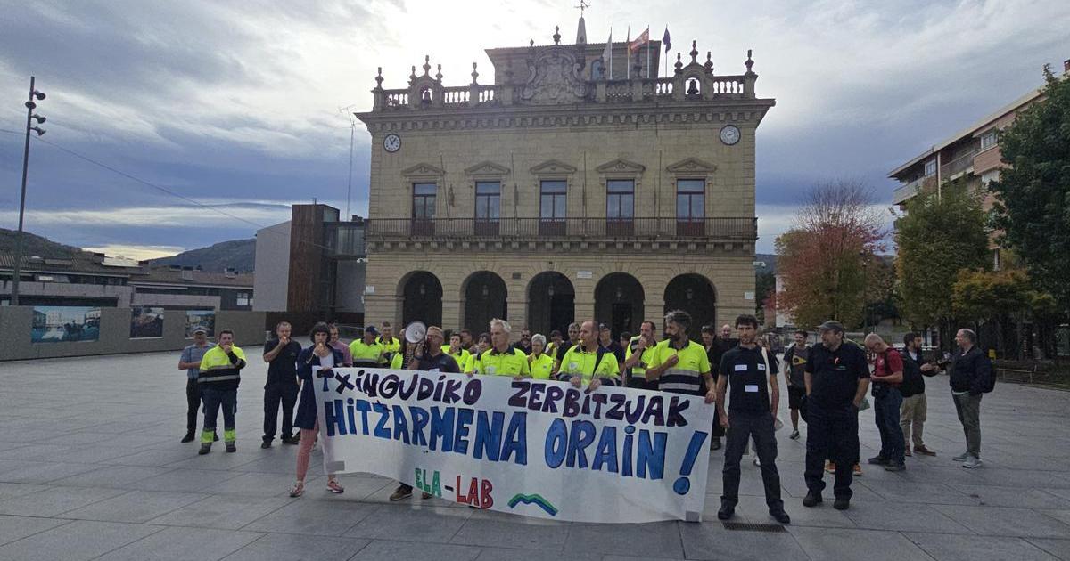 Parte de la plantilla de Servicios de Txingudi ha realizado un paro de dos horas y una concentración frente al Ayuntamiento, y han anunciado nuevas movilizaciones para los próximos días