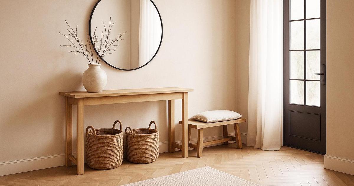 No tener en cuenta el tamaño de los muebles puede hacer que tu recibidor se vea como un espacio agobiante y con aspecto de ser más pequeño de lo que realmente es. Elige algo ligero y funcional, con almacenaje, cajones o cestos, para mantener el espacio ordenado.