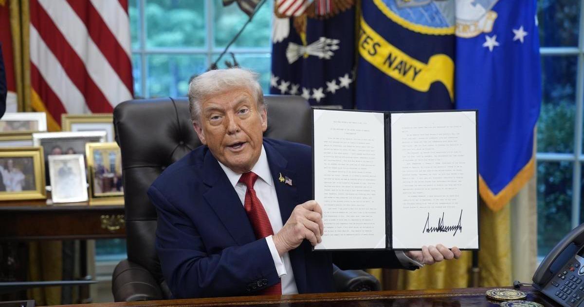 Donald Trump firma una orden ejecutiva en el Despacho Oval de la Casa Blanca.
