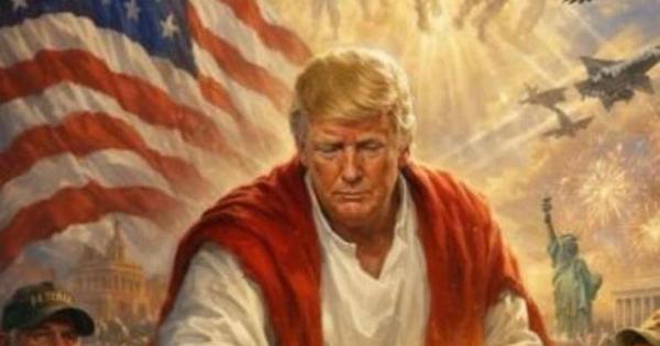 El presidente republicano subió esa imagen en su red social Truth y en ella también aparece rodeado de militares, sanitarios y una mujer civil rezando. En el fondo de la imagen aparece la bandera estadounidense, dos águilas volando y soldados a modo de ángeles en el cielo, además de la estatua de la libertad y varias edificios y monumentos icónicos en Estados Unidos.