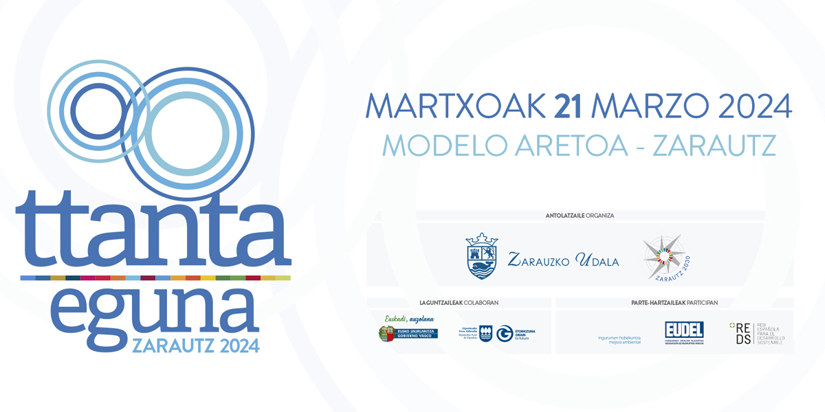 Este jueves se celebra la primera edición de Ttanta Eguna en el Cine Modelo de Zarautz. Se trata de un encuentro sobre la aplicación de los Objetivos de Desarrollo Sostenible en las políticas públicas, y la respuesta local de los municipios a la Agenda 2030.