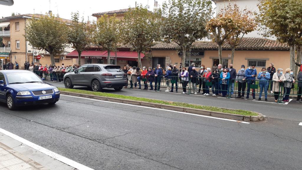 Ha llegado sobre las 11.30 horas a Tudela, donde ha sido recibida en la entrada del Cine Moncayo por la presidenta del Gobierno de Navarra, María Chivite; el delegado del Gobierno en Navarra, José Luis Arasti; el alcalde de Tudela, Alejandro Toquero; y el director del festival de cine, Luis Alegre.