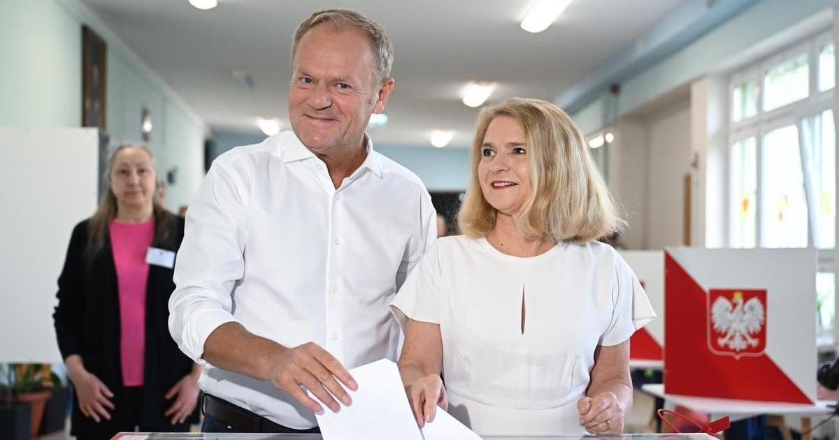 El primer ministro de Polonia, Donald Tusk, y su esposa depositan sus votos en la segunda vuelta de las elecciones presidenciales.