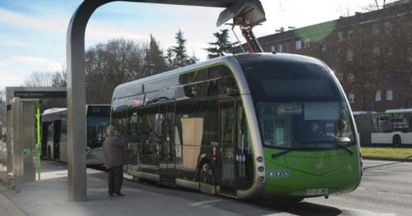 Vehículo de doce metros del bus eléctrico en el punto de carga rápida de El Boulevard