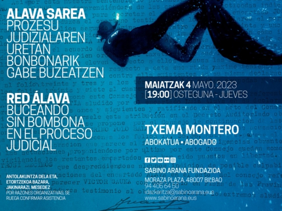 El 6 de mayo se cumple el 80 aniversario del fusilamiento de Luis Álava. Este jueves día 4 tendrá lugar una conferencia en la sede de SAF en Bilbao (Mandobide Kalea 6-3) titulada Red Álava. Buceando sin bombona en el proceso judicial en el que el abogado Txema Montero analiza la historia que acabó con la ejecución del ingeniero gasteiztarra y 21 encausados vieron sus penas conmutadas.