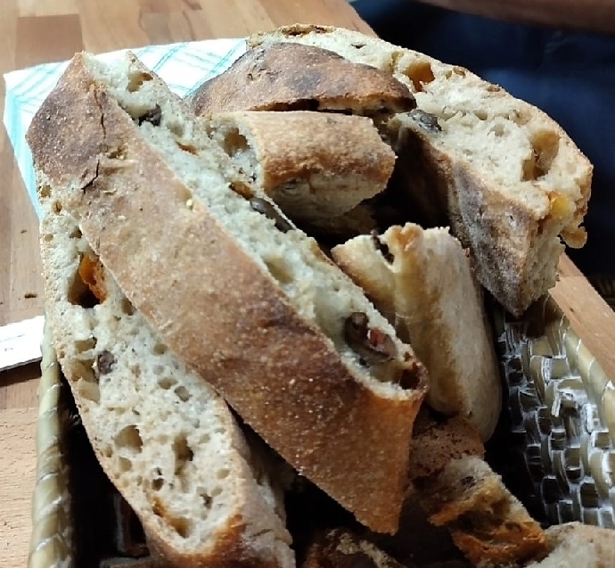 En cuanto al producto, al principio "elaborábamos pan artesano convencional", un mercado ya amplio, así que "comenzamos a hacer algunas hogazas ecológicas y las ofrecimos en tiendas de Bilbao". La respuesta de la mayor parte de ellas resultó positiva "y esa buena acogida nos animó definitivamente a sacar el sello ecológico, que representa ya nuestra seña de identidad y lo que nos diferencia". Con masa madre "que traje hace tres años y medio de la presentación que realizó el maestro panadero Florindo Fierro, de Zamora, para la asociación de panaderos en Derio" elaboran y distribuyen 1.600 unidades a la semana tras largas fermentaciones de ocho o nueve horas sin cámara y de diferentes y sabrosos panes, desde los más tradicionales como la hogaza, la pamitxa o el molde a otras suculentas variedades como focaccia -con aceitunas negras, tomate seco, aceite de oliva y orégano- o panes de trigo integral, de centeno y trigo con semillas, de nueces y pasas, de espelta integral, con pepitas de chocolate o de trigo sarraceno, entre otros. Y el sello ecológico avala a todos los ingredientes, una apuesta que ha requerido también su esfuerzo de búsqueda de suministradores. "Hemos intentado adquirir materia prima cercana, pero o no era posible o no salía rentable. Buscando en Internet encontramos más opciones y hoy en día mucho de lo que necesitamos viene de Mapryser, en Barcelona, la harina de Lleida o de Gumendi, en Nafarroa".