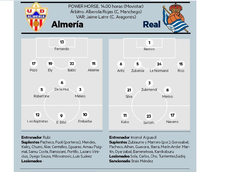 UD Almería - Real Sociedad | La Liga: previa, posibles alineaciones, bajas