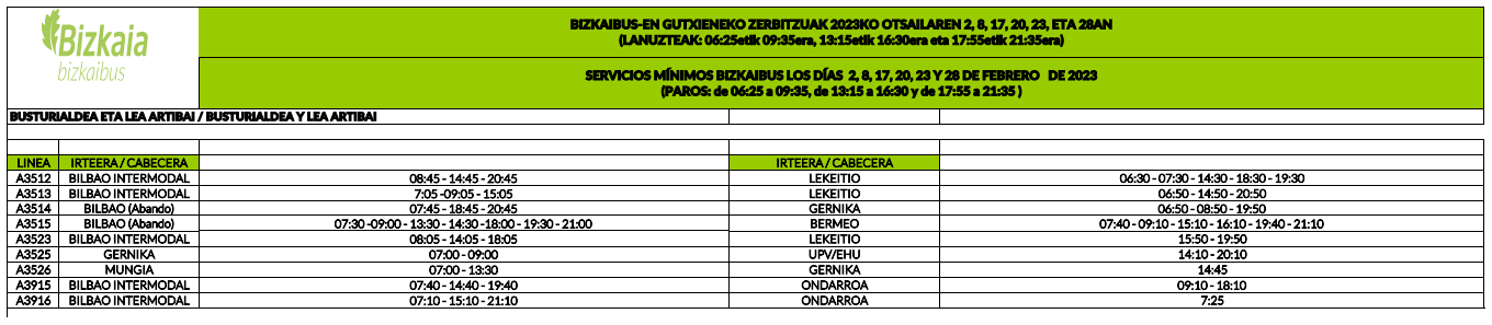 Te detallamos los servicios mínimos en Ezkerraldea y Meatzaldea: