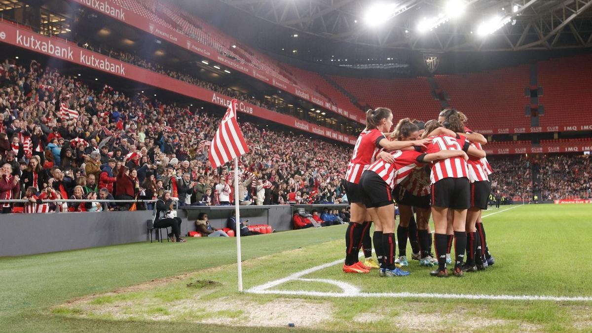 El empuje de San Mamés no fue suficiente. En la imagen las rojiblancas celebran su único gol del partido