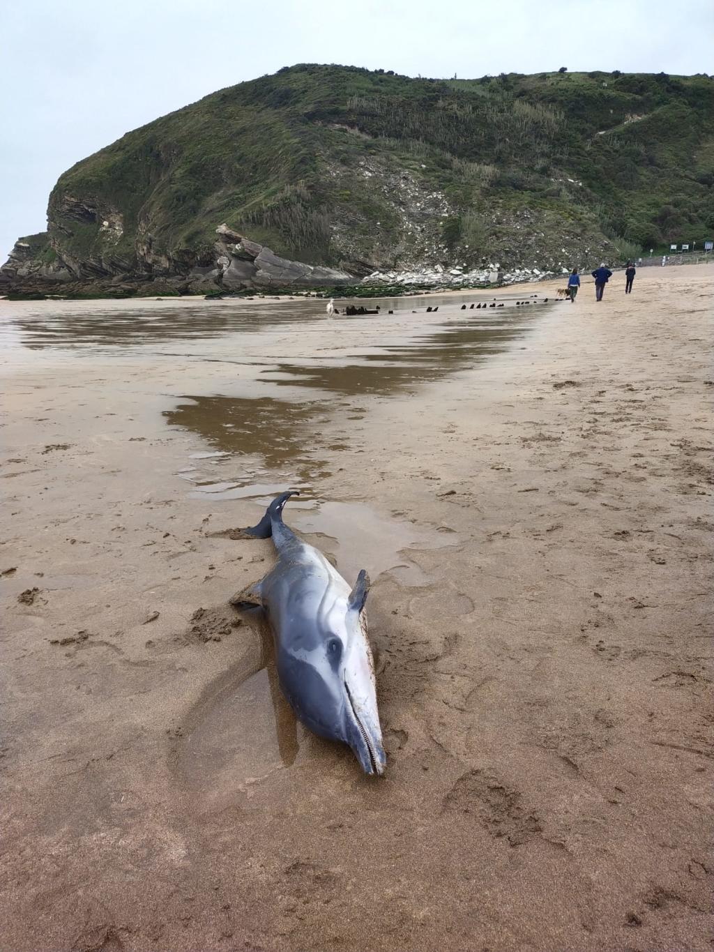 Al igual que con el arao, es la segunda vez en pocos días que un cetáceo aparece muerto en los arenales guipuzcoanos. En este caso, el pasado 30 de abril, un ejemplar de delfín listado apareció también fallecido en Zarautz.