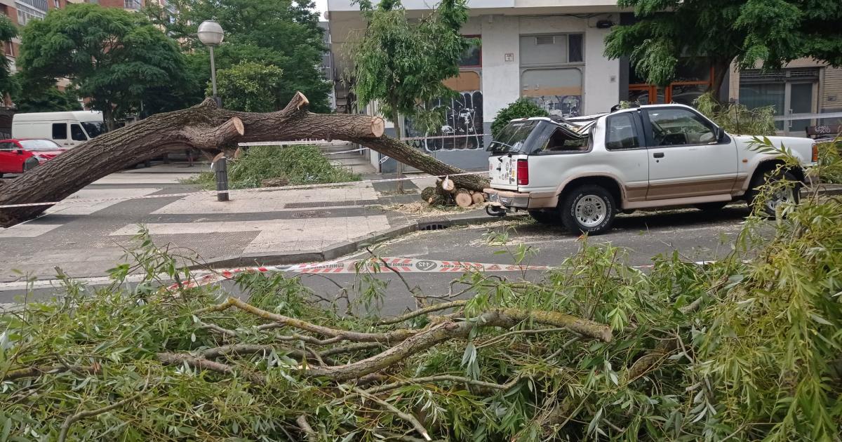 El barrio gasteiztarra de Arana se despertaba con un estruendo. Un sauce llorón, que estaba muy deteriorado, se desplomó de repente cayendo sobre el techo de un vehículo que quedó destrozado. Por la hora en la que se produjo, cerca de las cuatro de la mañana, no había nadie en la calle, por lo que no hay que lamentar víctimas.