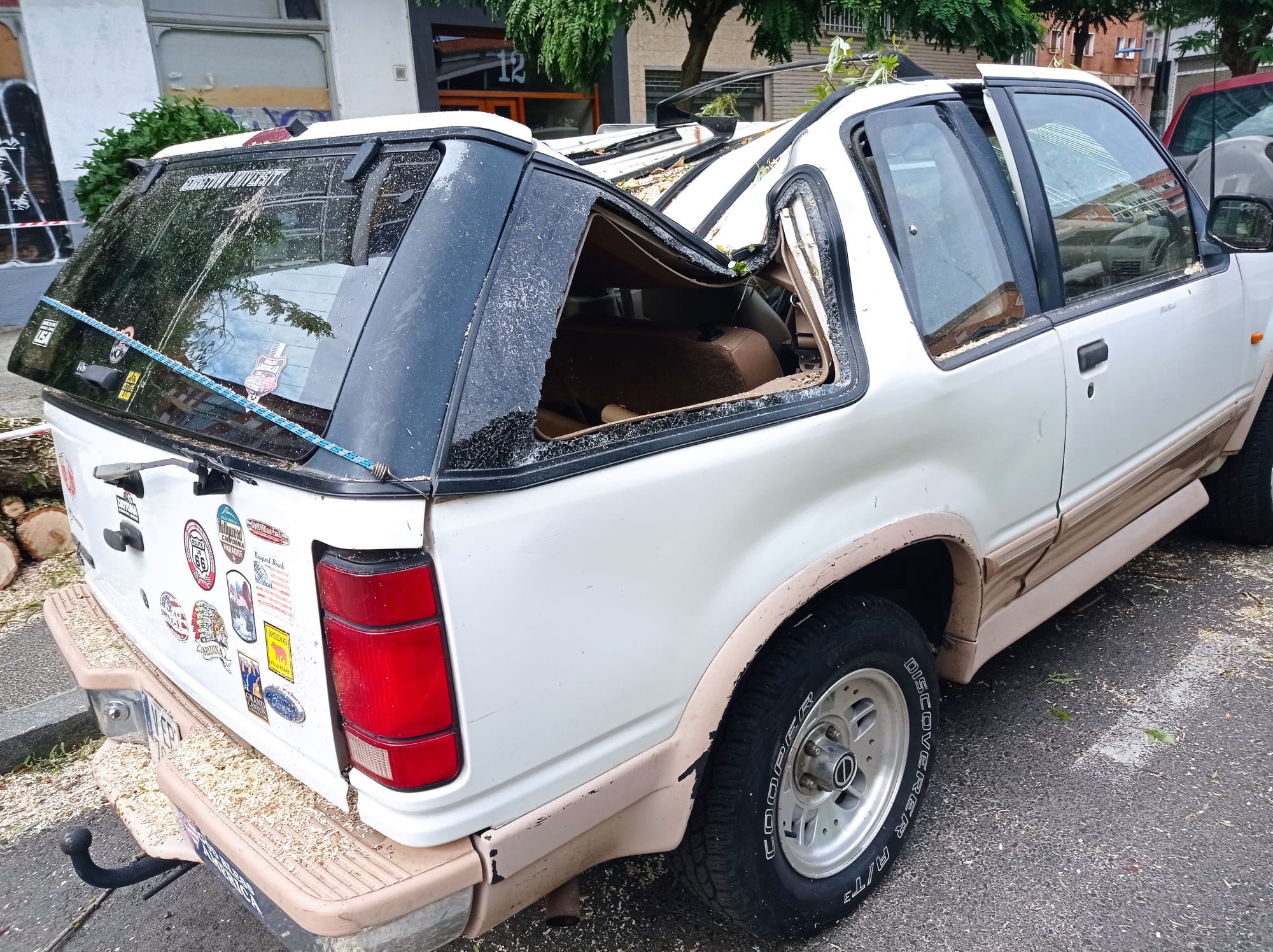 La caída de Árbol ha ocasionado daños importantes en el vehículo. OV