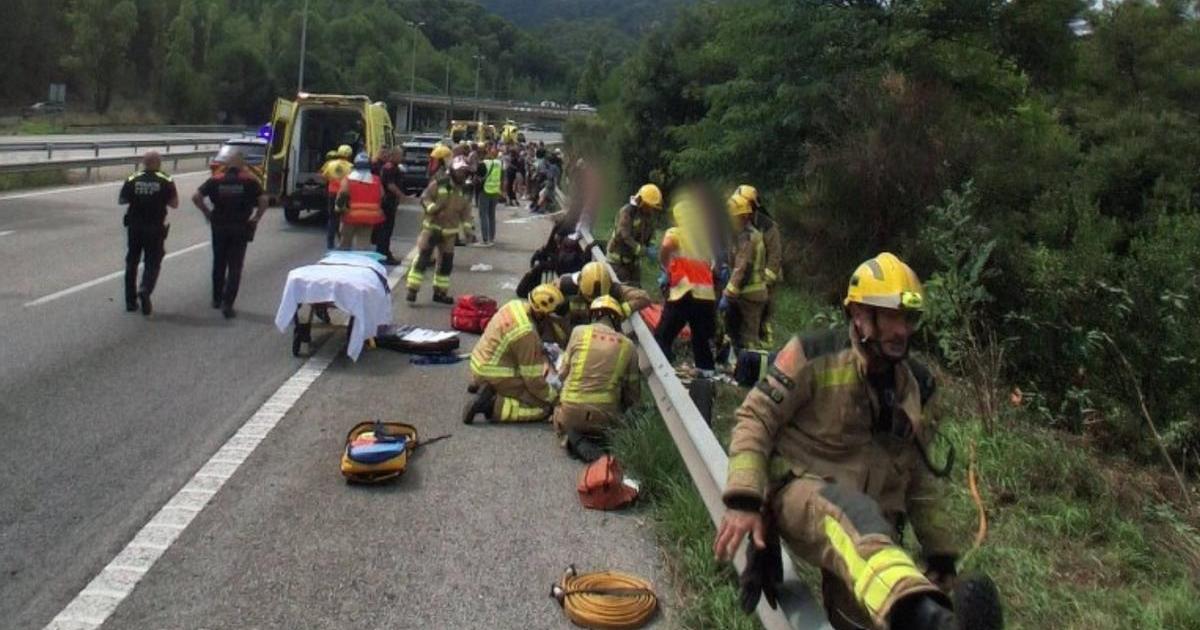 Un total de 53 personas han resultado heridas, dos de ellas graves y una menos grave, al salirse este domingo de la vía un autocar de línea que iba al aeropuerto de El Prat (Barcelona) y despeñarse por un terraplén en la autopista C-32 a su paso por Santa Susanna (Barcelona).