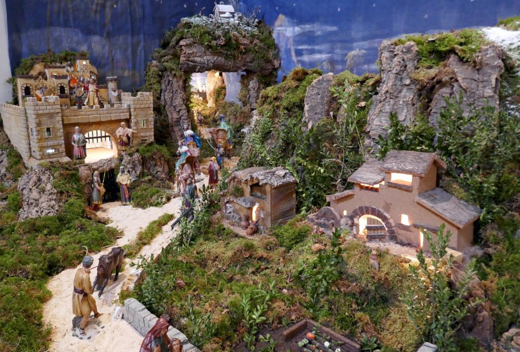 Con buena mano y un gusto exquisito que traslada a todo lo que hace, en este caso al belén, Eusebio Marcotegui juega con los volúmenes, el agua, las luces y el fondo para representar el Nacimiento de Jesús en un pueblo de pastores en el que a lo lejos se vislumbra el santuario de San Miguel de Aralar pero también la Esfinge de Giza en el camino de los Reyes Magos hacia el portal, un mundo mágico en el que también se puede ver a un joven encendiendo el fuego, una lavandera o gente acarreando el agua que baja desde el monte para alimentar de fuerza al molino, un conjunto armónico que transmite alegría. También se encarga de las vestimentas de los Reyes Magos.