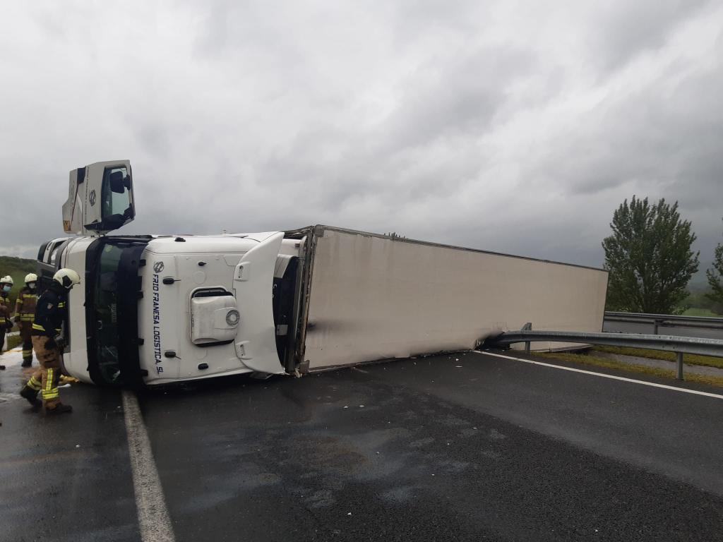 La matinal en las carreteras alavesas se ha visto sobresaltada poco antes de las 11 de la mañana con el vuelco de un camión en el punto kilométrico 389 de la A-1. El percance ha tenido lugar concretamente en la localidad alavesa de Asparrena y ha provocado el corte de la circulación en sentido Irún.
