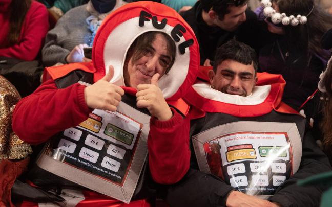 Vicent y Elena, disfrazados con un atuendo enterizo que emula a un animal, son dos de los muchos jóvenes que han entrado de los primeros al sorteo. Ellos han expuesto que todo empezó como algo que tenían pendiente por hacer, "un reto" que han cumplido durante ya tres años y destacan que lo viven con "ánimo" y que "está muy guay", aunque con los premios de 1.000 euros "va decayendo".