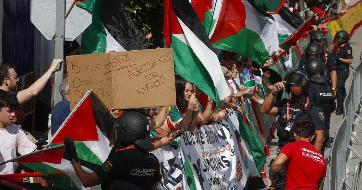 La detención tuvo lugar después de que los manifestantes entonasen consignas propalestinas e intentase desplazar las vallas. Este episodio ha llevado al dispositivo de seguridad a realizar un doble vallado en un punto a 150 metros de la línea de meta.