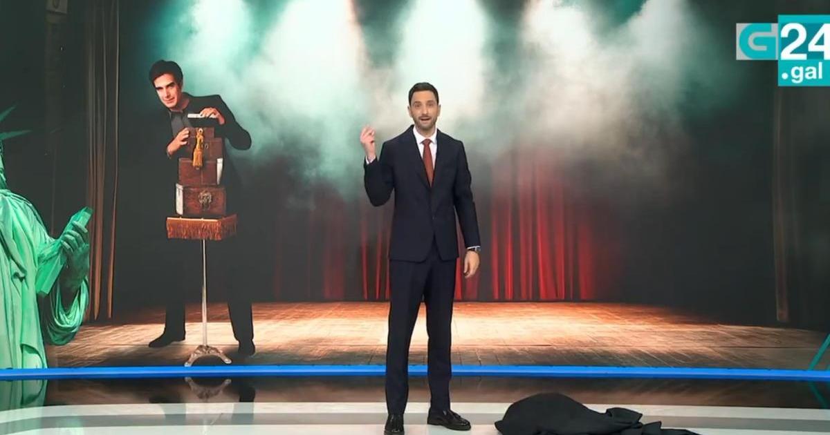 “Hoy cumple años David Copperfield, el mítico mago. Un tipo que arrasó en los 80 y 90 con trucos como este de la sierra, planteado como una huida que no salía bien y terminaba partido por la mitad. También tuvo mucho éxito cuando hizo desaparecer la Estatua de la Libertad en Nueva York”, explicaba Muñoz (en gallego) antes de anunciar lo que venía.
