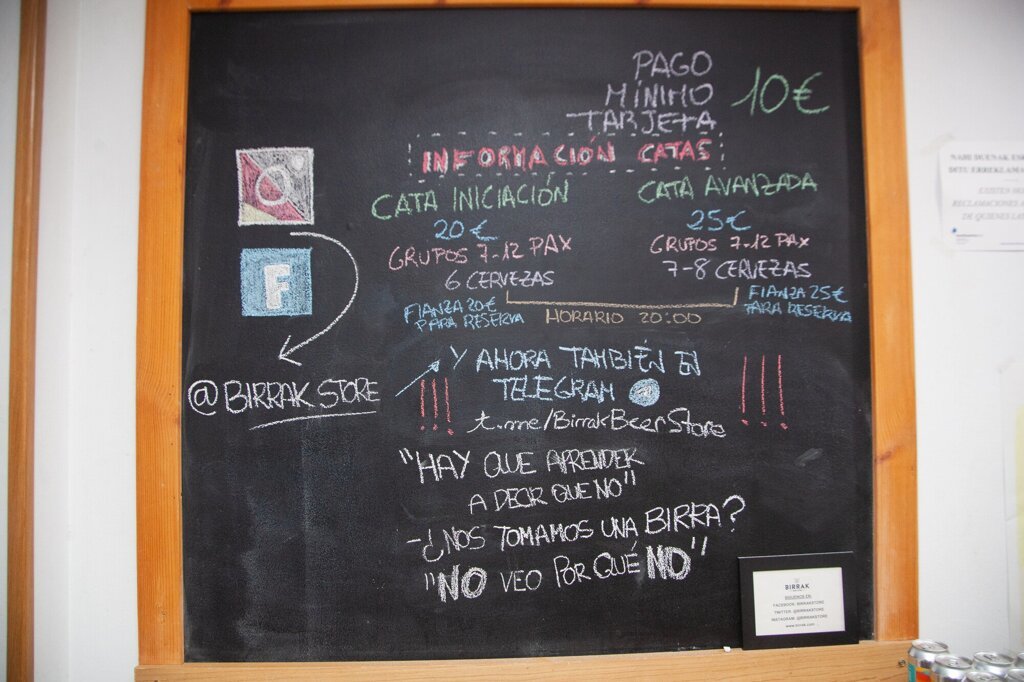 En Birrak Beer Store se hacen dos tipos de catas de cerveza, de iniciación y avanzada, según el interés de cada cliente o del conocimiento que tenga. Y se clasifican en catas de grupo con un mínimo de siete personas y catas individuales. Todas se realizan fuera del horario comercial y se acuerda con el cliente.