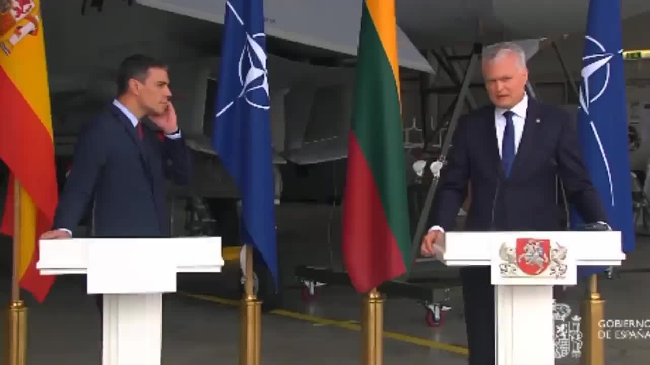 Las tropas españolas destacadas en misión de la OTAN en la base militar lituana de Siauliai han detectado en torno a las 11.40 horas de este jueves al menos un avión no identificado que sobrevolaba el mar Báltico, previsiblemente procedente de Rusia, lo que ha obligado a interrumpir la comparecencia conjunta del presidente del Gobierno, Pedro Sánchez, y el presidente lituano, Gitanas Nauseda, que se estaba celebrando en la base.