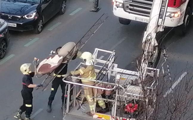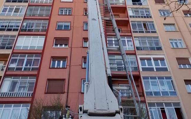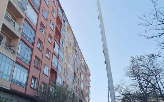 Cuando el camión grúa de los bomberos ha comenzado a elevar la escalera, subiendo un brazo articulado hasta el tejado del edificio de siete alturas, son muchos los vecinos que han estado observando y preguntándose qué pasaba en la calle Reyes Católicos.