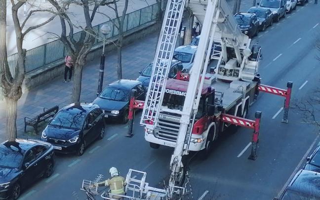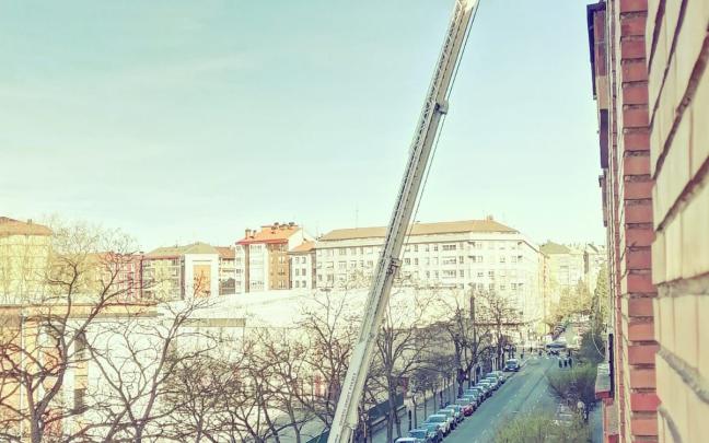Tras dos horas de intervención, los bomberos que han descendido en la cesta de la escala portaban varias antenas de televisión y parabólicas. Una vez finalizado el trabajo, sobre las ocho de la tarde el tráfico ha sido reanudado en esta arteria de Vitoria.