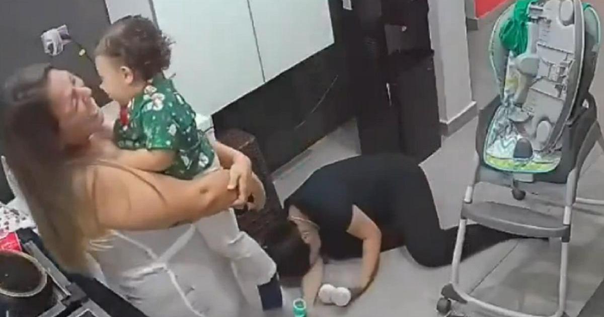 El vídeo, grabado por una cámara de seguridad que hay instalada en una esquina, muestra a dos amigas y un bebé en lo que parece la cocina de una casa. La madre prepara el biberón y se dispone a dar de comer a su hijo, a quien su amiga ha cogido en brazos y por tanto no está en la silla en la que habitualmente come.