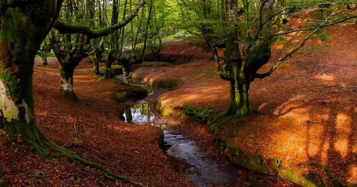 El Hayedo de Otzarreta, situado en el municipio vizcaíno de Zeanuri, dentro del Parque Natural del Gorbeia, es uno de los rincones más singulares y visitados del Bizkaia. Lo que lo hace especial no es solo su belleza natural, sino la forma en que sus árboles desafian las normas de la botánica. Las hayas centenarias del bosque, conocidas por haber sido “trasmochadas” (fueron podadas a unos tres metros de altura hace siglos para aprovechar su madera en la producción de carbón vegetal). Con el tiempo, esas podas dieron lugar a un crecimiento vertical de las ramas, creando pilares naturales cubiertos de musgo que parecen sacados de un paisaje de película fantástica.