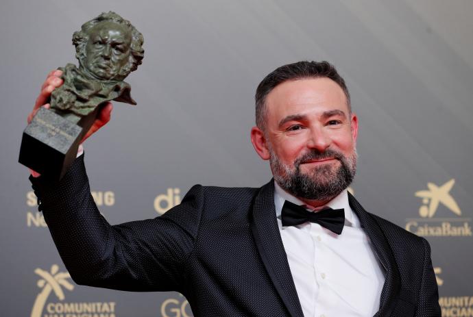 Urko Olazabal se muestra exultante tras conseguir el Goya a mejor actor secundario. Hemos analizado con el actor bilbaíno el discurso de agradecimiento que ofreció al recoger el premio en sábado en Valencia