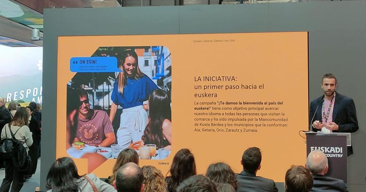 La Mancomunidad Urola Kosta llevó a la feria internacional de turismo Fitur en Madrid, la semana pasada, el valor añadido del euskera. Presentó el proyecto Ongi Etorri Euskararen Herrira, donde pusieron en valor el euskera como elemento diferenciador y parte de una experiencia turística auténtica.