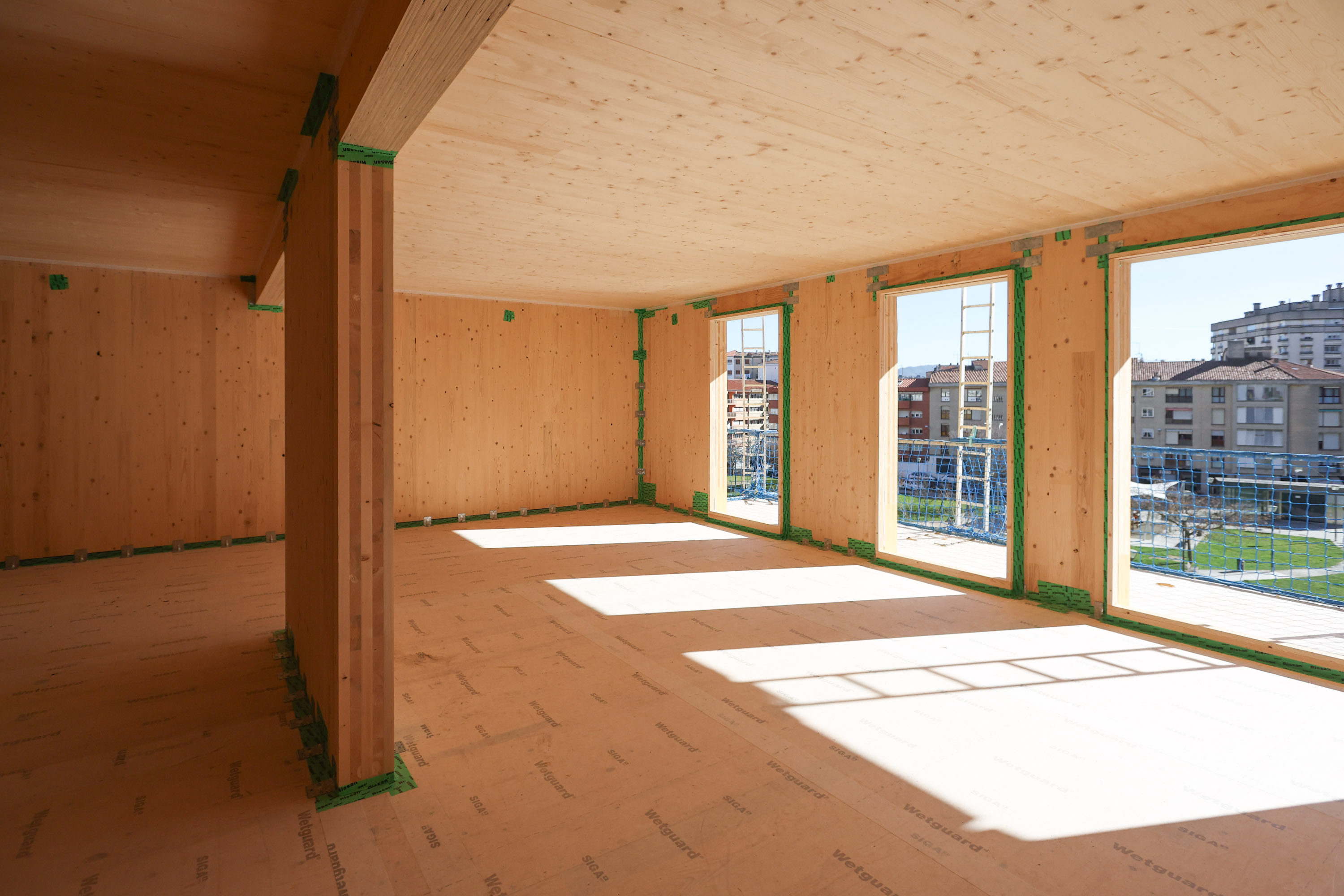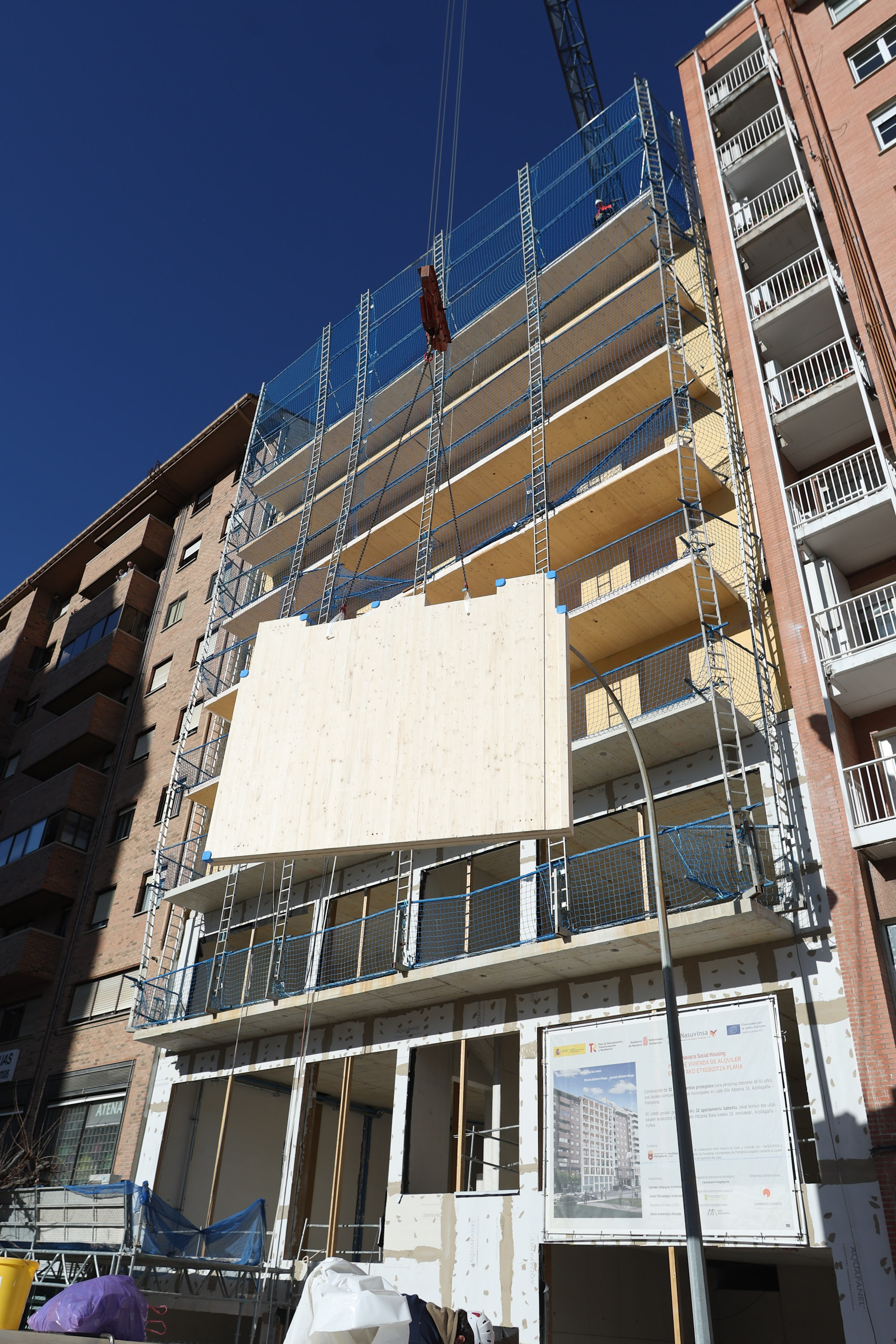 Con más de 500 toneladas de madera, el Gobierno de Navarra avanza en la construcción de 32 apartamentos de alquiler en Azpilagaña para personas mayores de 60 años o con discapacidad