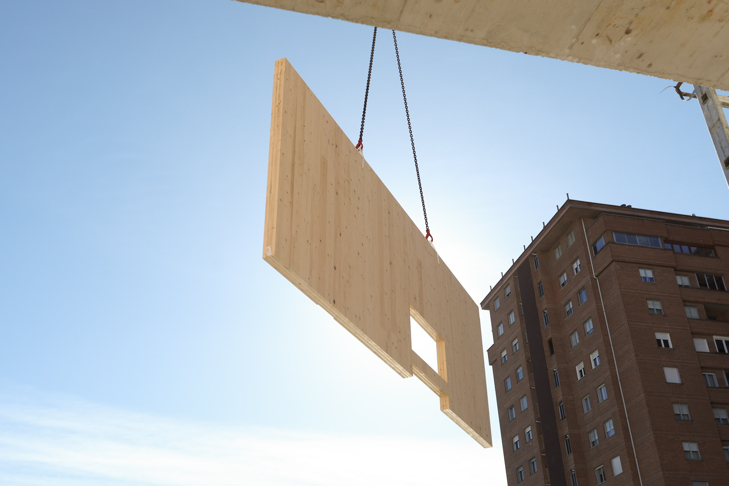 Obras de construcción del edificio de madera más alto de Navarra. Gobierno de Navarra
