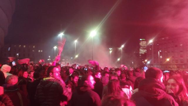 El ambiente festivo se respira en cada rincón, con bares rebosantes de seguidores que celebran el logro de sus jugadores. Desde tempranas horas, los aficionados se congregaron en sus hogares, bares, txokos... para seguir juntos el partido y compartir la tensión, la emoción y, finalmente, la euforia desatada al conocer el resultado.
