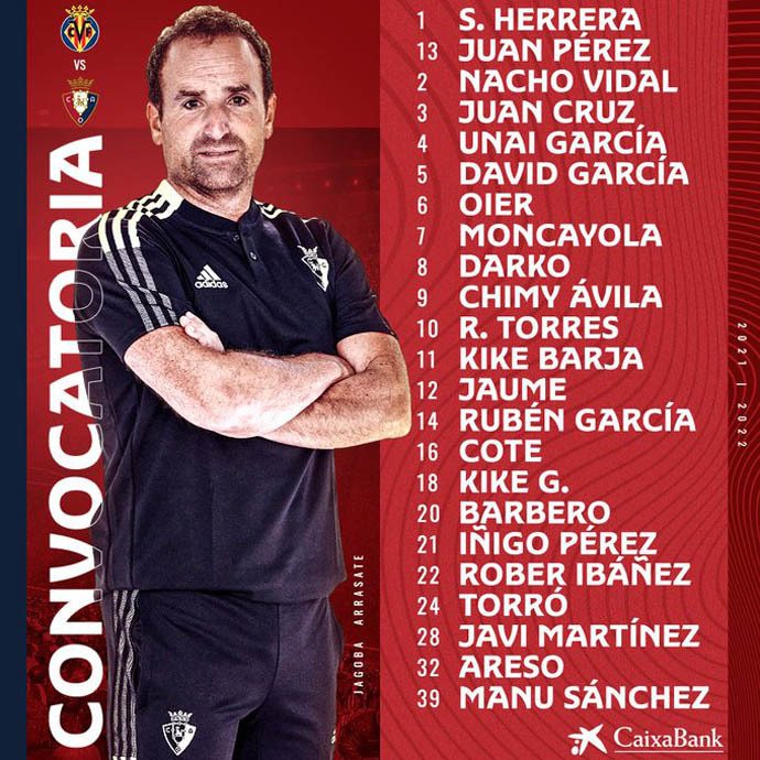 El de Berriatua espera un choque en el que el Villarreal tenga el balón más que Osasuna, algo con lo que los rojillos deberán lidiar para estar lo más cómodos posibles.