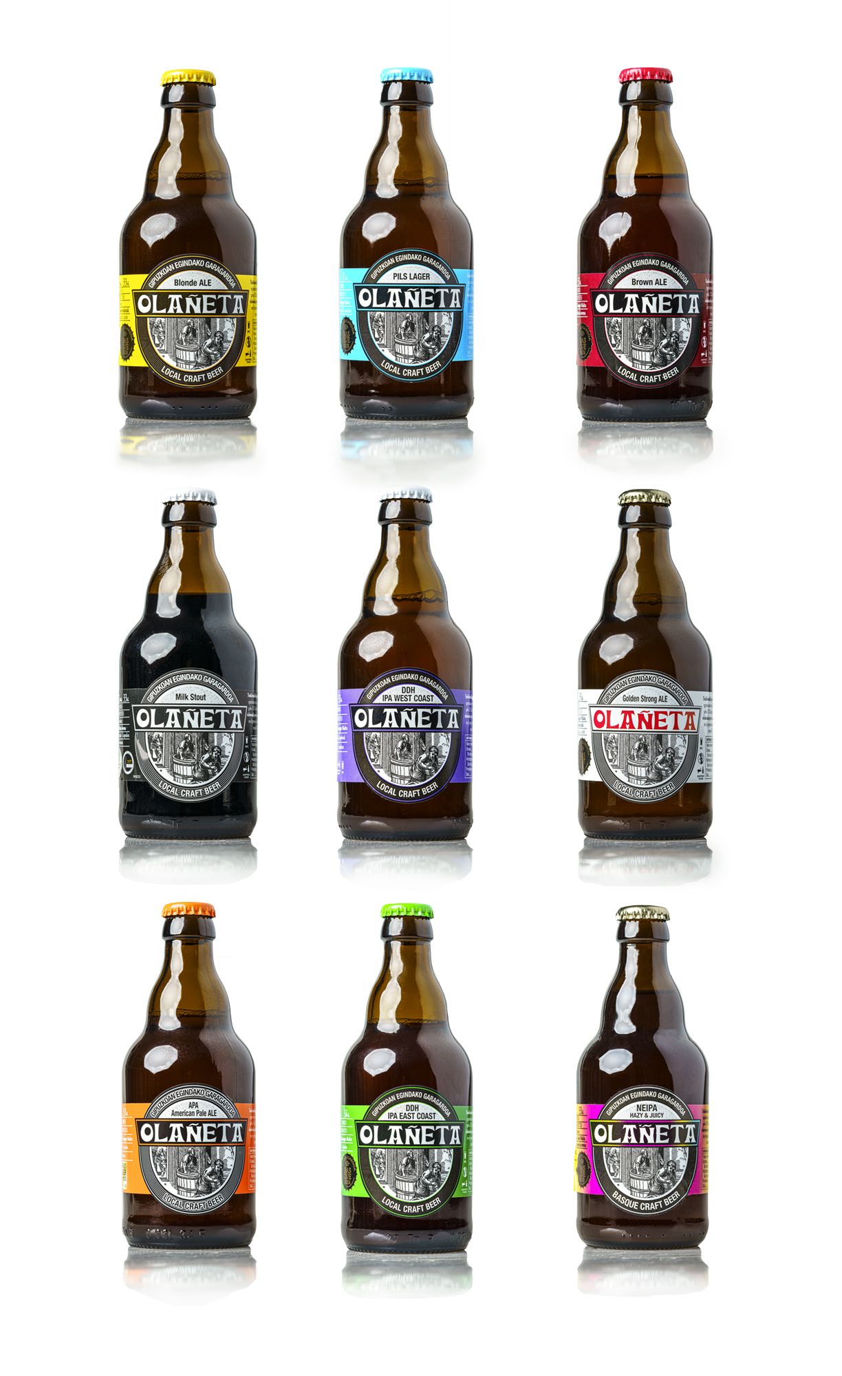 Actualmente elaboramos nueve cervezas con la marca Olañeta: cinco de ellas estilo tradicional, Lager Pils, Blonde Ale, Brown Ale, Golden Strong y Milkstout; y cuatro lupolizadas, que son IPA East Coast, IPA West Coast, APA y NEIPA. Nuestra característica fundamental es la elaboración siguiendo el método tradicional o Champenoise de segunda fermentación en botella o barril, es decir, sin añadir CO₂ de manera artificial.