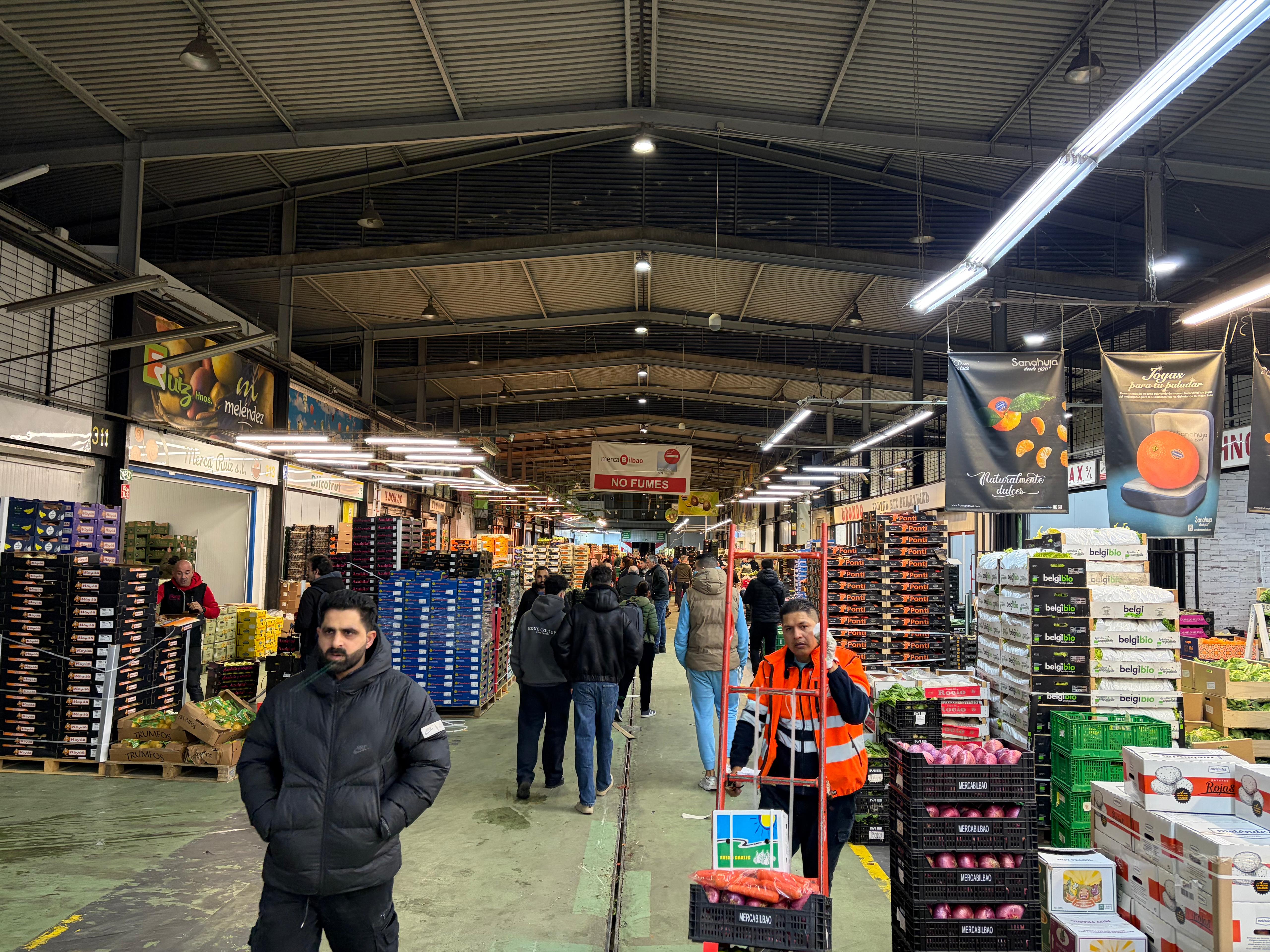 Mientras todo el mundo duerme, en Mercabilbao la actividad es frenética. No es para menos con la campaña de Navidad a la vuelta de la esquina. Es el principal distribuidor de la Zona Norte y comienza su actividad a las 5.30 horas de la madrugada. A esa hora hemos llegado los medios de comunicación a la tradicional visita que Mercabilbao nos ofrece por estas fechas. Goteo constante de coches, furgonetas y trasiego de personas que cargan y descargan palés para que el producto esté listo a primera hora en los mercados.