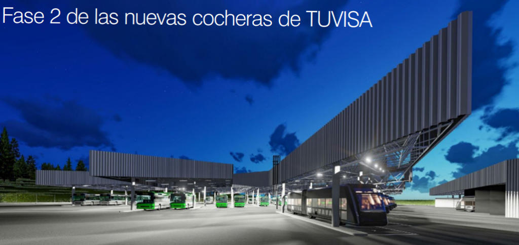 Las nuevas cocheras para los vehículos eléctricos de Tuvisa están actualmente en construcción y tendrán capacidad de recargar las baterías de una veintena de autobuses. Con los 6 millones de euros que se van a invertir en una segunda fase se multiplica esa capacidad y se estará en condiciones de disponer de 40 puntos de recarga para los futuros vehículos eléctricos que adquiera la sociedad municipal.