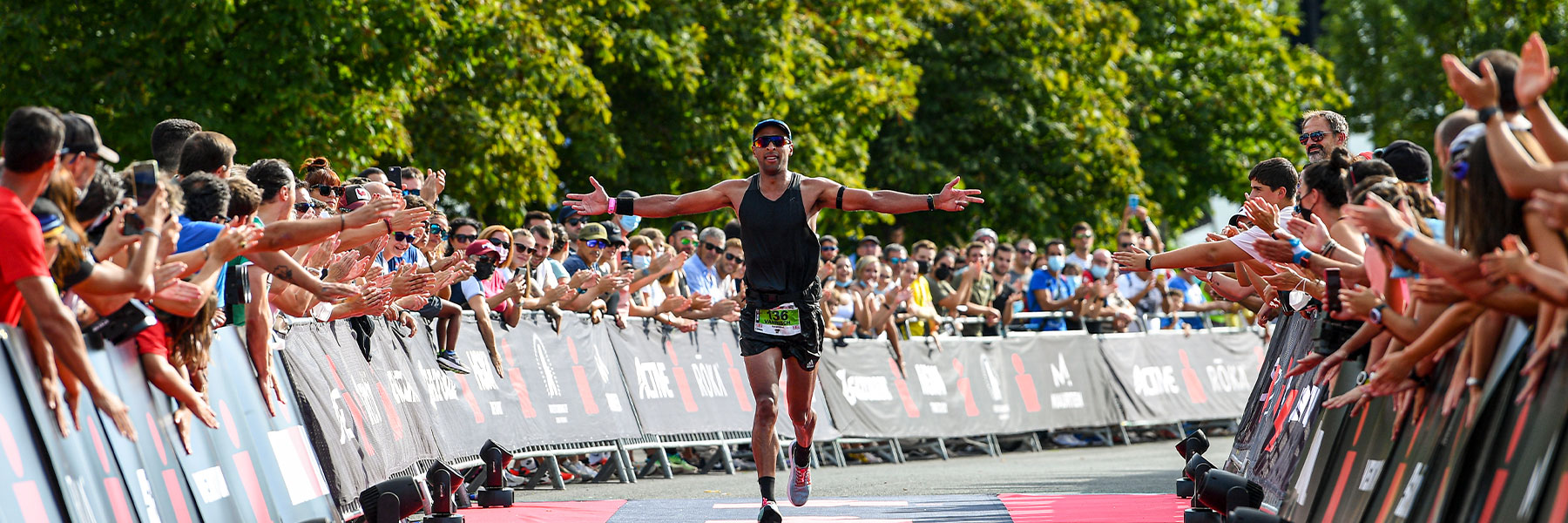 El triatlón de larga distancia se compone de un primer segmento de natación de 3,8 kilómetros, un recorrido en bicicleta de 180 kilómetros y una última parte donde los atletas deberán correr los 42,195 kilómetros de una maratón. Para que la franquicia organizadora te considere "finisher" y puedas coleccionar la medalla, has de cumplimentar estos 226 kilómemtros totales en un tiempo inferior a las 17 horas