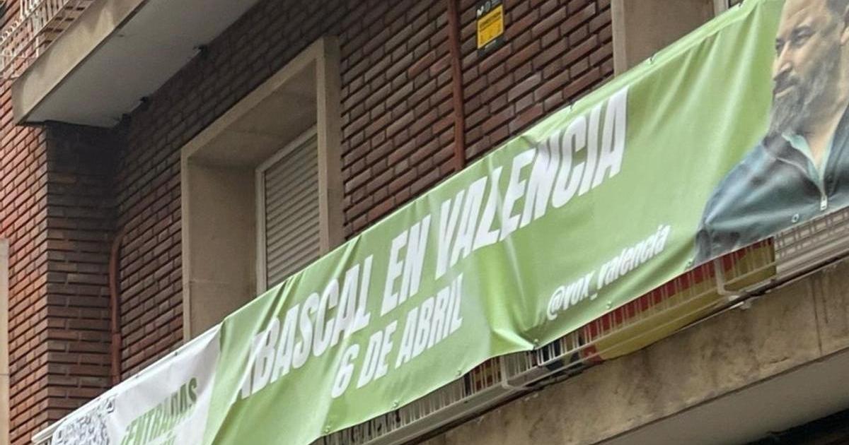 Vox ha colocado en el balcón de su sede de Valencia una pancarta anunciado el acto que el presidente de esta formación, Santiago Abascal, tendrá el próximo domingo, 6 de abril, en esta ciudad y el Ayuntamiento de la capital valenciana le ha comunicado que la normativa vigente no permite ese tipo de publicidad exterior.