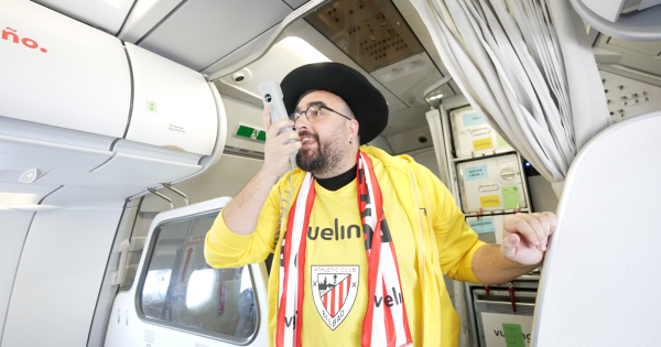 Un vuelo con diferentes activaciones de apoyo al equipo vasco, como el vinilado del avión, la customización del interior o la entrega de packs de bienvenida con elementos de animación para los pasajeros