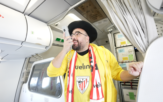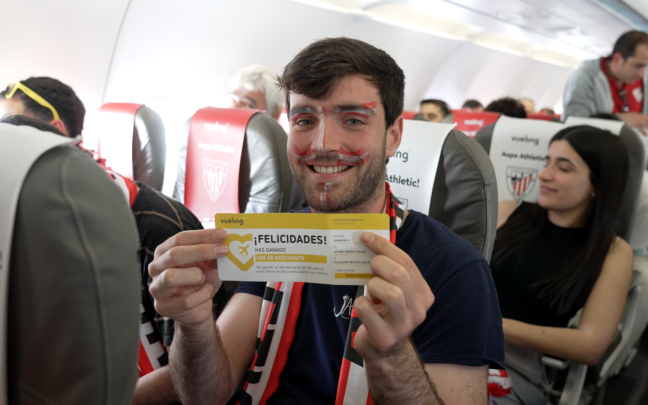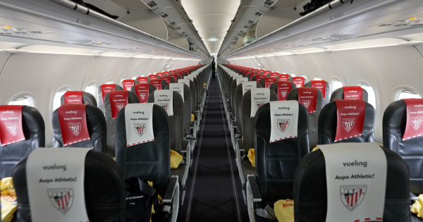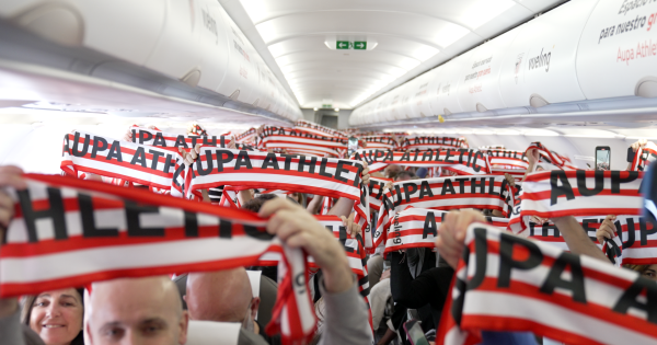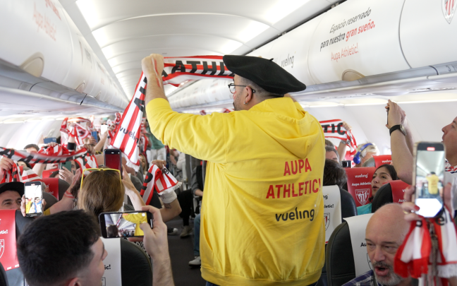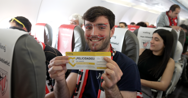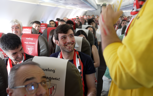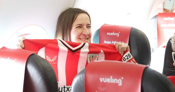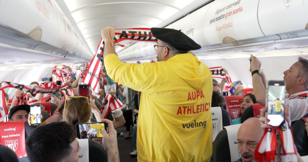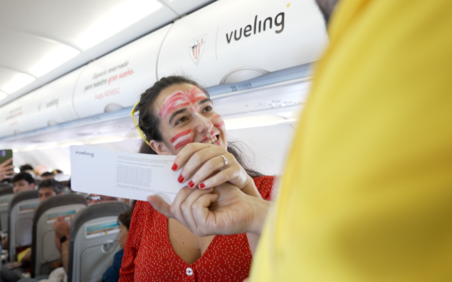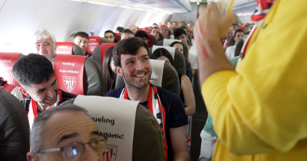 Vueling, compañía perteneciente al grupo IAG, operaba este viernes un vuelo especial desde el aeropuerto de Bilbao hasta Sevilla, con motivo de la final de la Copa del Rey, que disputarán este sábado el Athletic Club y el RCD Mallorca. Los aficionados que viajaban en el vuelo disfrutaron de distintas actividades durante el viaje, que se realizó en un avión vinilado con los colones del club.