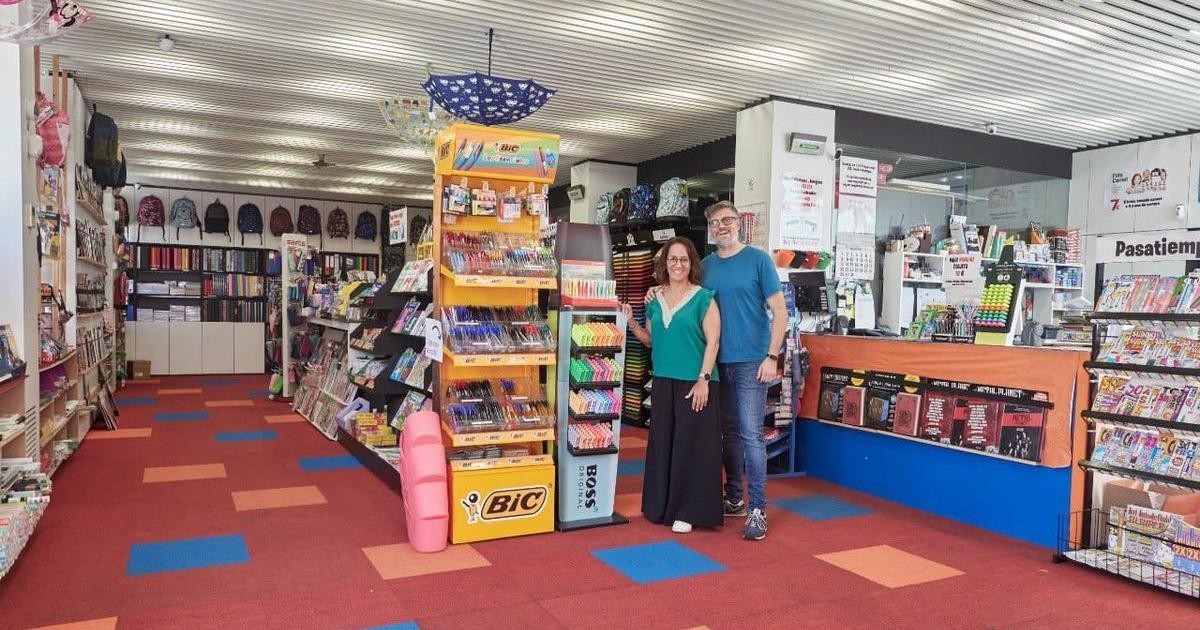 Virginia Cuadrado y Eduardo Sanz, en la papelería Ezkaba.