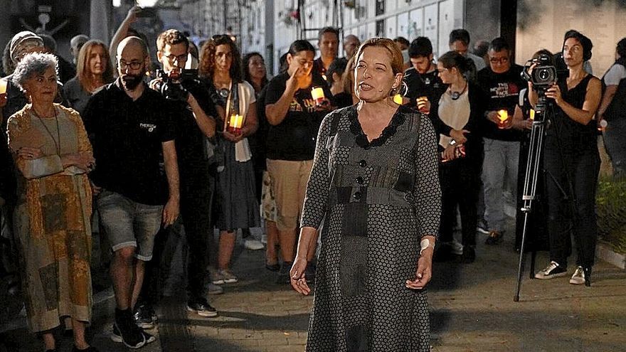 La luz de las velas –de led, para evitar riesgos innecesarios– dejaba entrever un rostro joven, pálido y tembloroso. La narración de los hechos a cargo de la artista Sahara Vicente –caracterizada de Josefa y luego como criada de doña Casilda de Iturrizar– fue la primera de las sorpresas que cautivaron y emocionaron al centenar de asistentes a la visita teatralizada celebrada en el camposanto de Bilbao, compartido entre Derio y Zamudio.