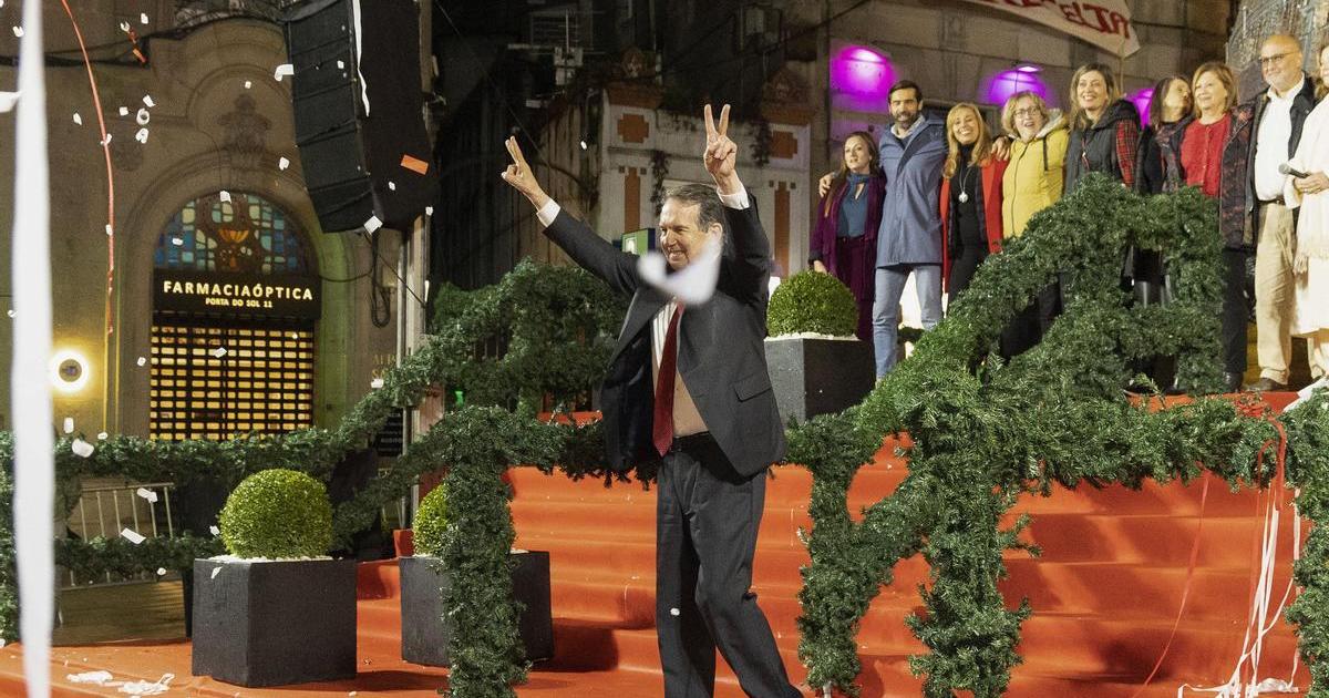 El regidor vigués, que disfruta como un niño cuando sube al escenario de la Porta do Sol para alumbrar la urbe con luces navideñas, ha concluido su ya tradicional cuenta regresiva en tres idiomas (inglés, español y gallego) cuando aún restaban más de 939 horas para la Navidad. 39 días, nada menos.